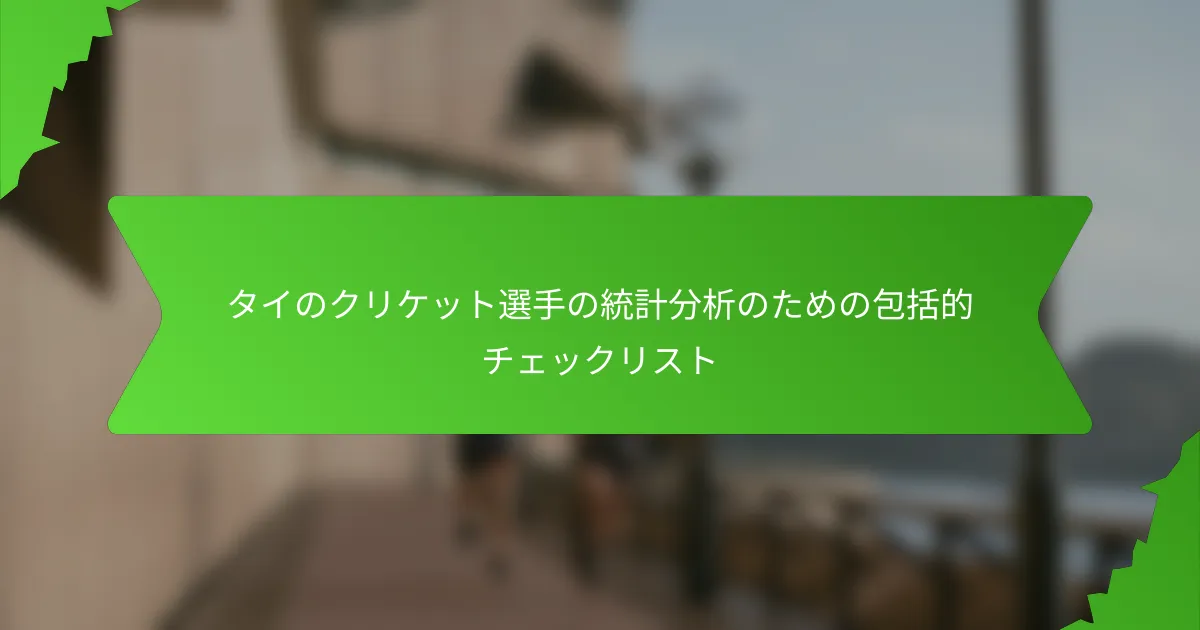 タイのクリケット選手のパフォーマンスを評価するには、ゲームに影響を与えるさまざまな指標や文脈要因を分析する必要があります。重要な側面には、統計データ、歴史的パフォーマンス、同僚との比較が含まれ、これらは選手の能力についての包括的な見解を提供します。
