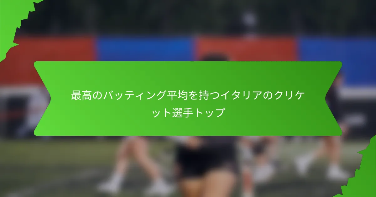 最高のバッティングアベレージを持つイタリアのクリケット選手たちは、そのパフォーマンスにおいて卓越したスキルと一貫性を示しています。アベレージが40を超えるこれらのアスリートは、ゲームのさまざまなフォーマットで効果的に得点する能力を示し、彼らの技術的な力量と精神的なレジリエンスを反映しています。